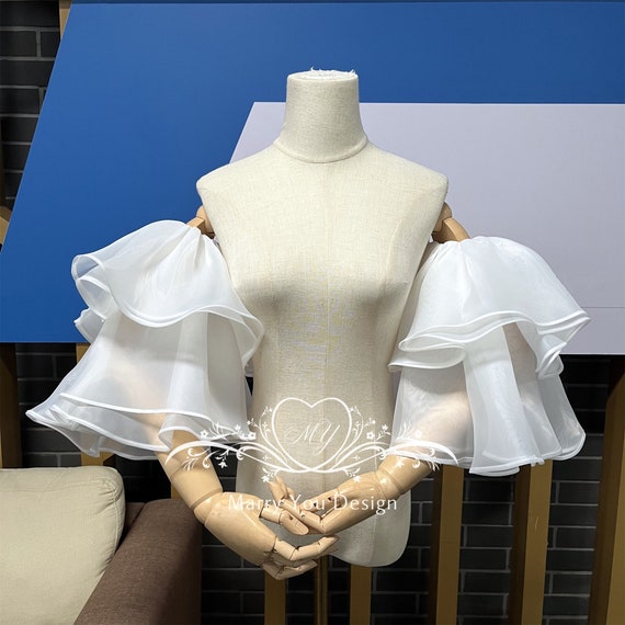 ¿Tienes un vestido de novia sin tirantes o con tirantes finos y quieres añadirle un toque romántico y de cuento de hadas? Estas mangas hinchadas desmontables son el accesorio perfecto para transformar tu look en un momento. Son de un poliéster blanco de calidad, suave y que no hace bolitas. Tienen ese volumen 'abullonado' tan bonito en los hombros, que además ayuda a estilizar visualmente los brazos. La gran ventaja es que son desmontables: puedes llevarlas puestas para la ceremonia y la sesión de fotos, y luego quitártelas cómodamente para bailar en la fiesta sin calor. Se combinan fácilmente con vestidos de novia de diferentes estilos (sobre todo los sin tirantes o tirantes spaghetti), tops elegantes o incluso con vestidos tipo Lolita para una fiesta de disfraces. No son solo para novias: son ideales para damas de honor, para una cena de gala, una comunión o cualquier evento donde quieras un look especial y femenino. Vienen en un tamaño generoso (unos 31 cm de ancho por 25 cm de largo) para que queden bien. Fáciles de guardar y llevar. ¡Añade magia y versatilidad a tu vestido especial!